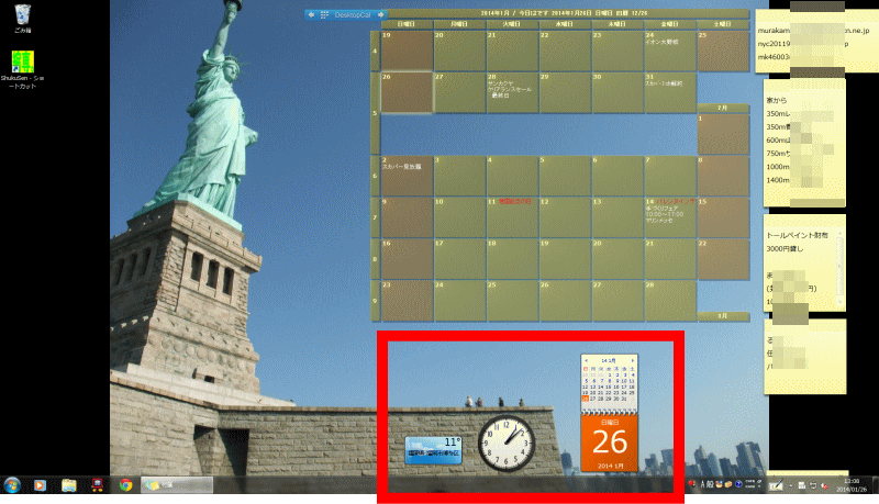 設定方法:デスクトップにて右クリック⇒ガジェット⇒時計をクリック
