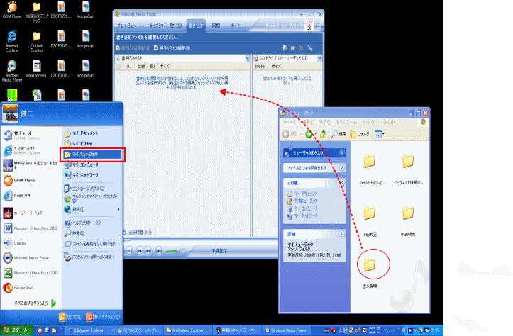 5.パソコンのマイミュージックを開き、先ほど取り込んだ音楽フォルダを探します。