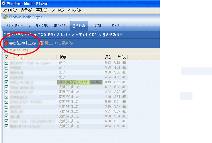 6.書き込みリストに曲名が表示されると、書き込み準備完了。