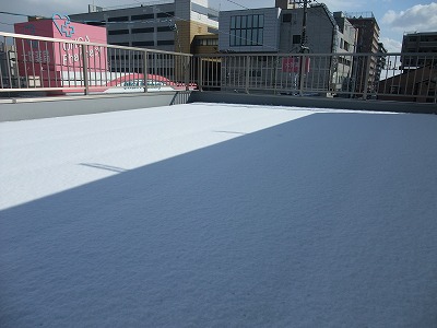 屋上に行ったら足跡ひとつ無く雪が綺麗に積もってた。