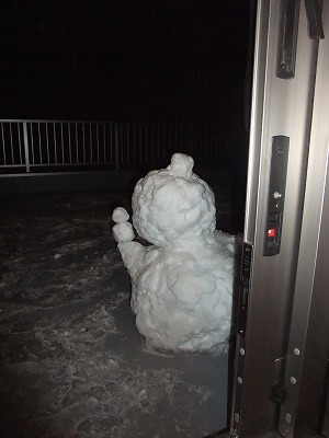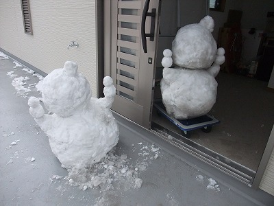 1/13.1/14 福岡県は雪が積もったので雪だるまを警備させた。