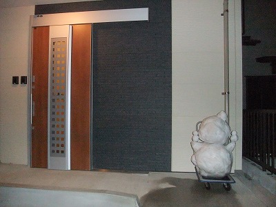 車椅子使用目的で設置されたエレベーターでみごと雪だるまを
