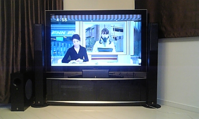 箱開けて設置完了。色はテレビとテレビ台に合わせてブラックです。