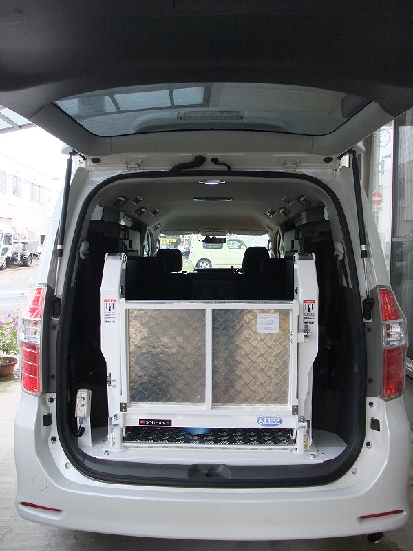 助手席回転シートの車でしたが、トランク開けて車椅子のままでも乗り込めるリフトを付けました。