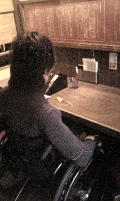 中に入ると車椅子の高さに合わせて作られたカウンター席(3人がけ)。