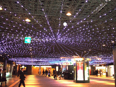 地下鉄で天神に着くと天井一面が青くクリスマス使用に光って綺麗でした。