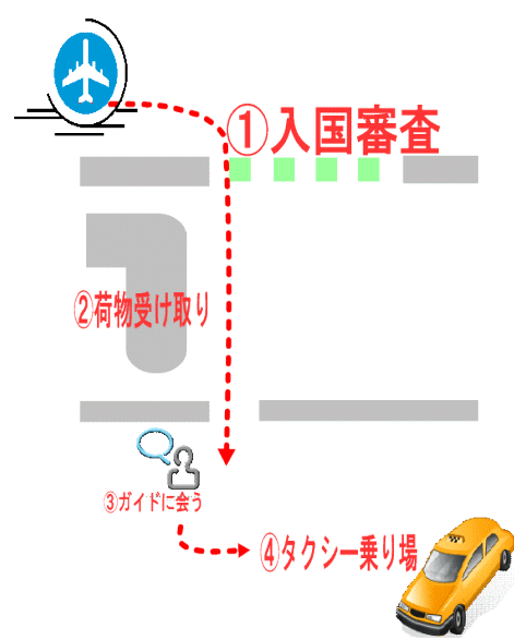 荷自分の物を受け取り、出口へ進みツアー係員(日本人)を探します。