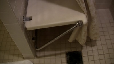 ▲シャワー室は浴槽が無く、折りたたみ式の椅子が壁に設置してありました。