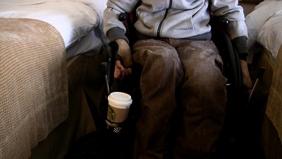 車椅子を固定したがグラグラして、なんだか不安。