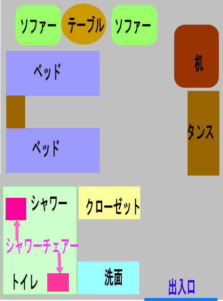 ・客室は通常の部屋からバリアフリールームへ無料で代えてもらいました。