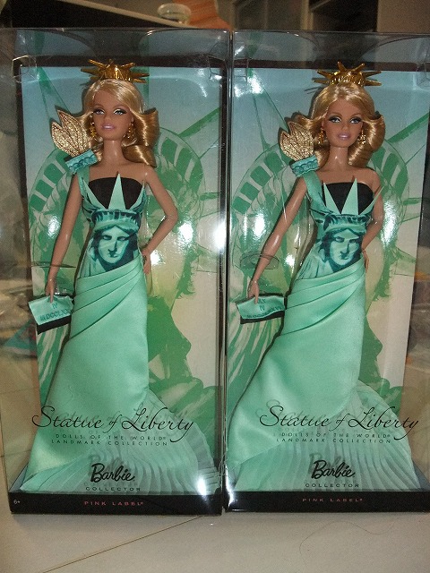 嫁様が買ったニューヨークの自由の女神バージョンバービー人形2つ。