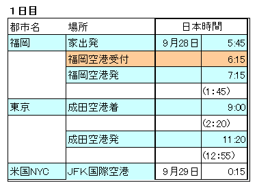 JFK空港到着時 アメリカ時間 9月28日11:15