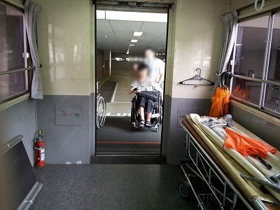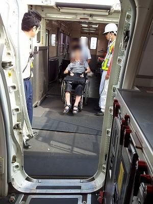 搭乗用車椅子はひじ置きも取り外され、体位バランスが心配でしたが座面の幅は広い上、シートベルトもあり全く問題ありませんでした。