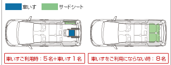 改造について調べてゆくと、新車で購入したディーラーの改造車であれば下の図のように、車椅子が使用しない場合は3列目を使用できます。