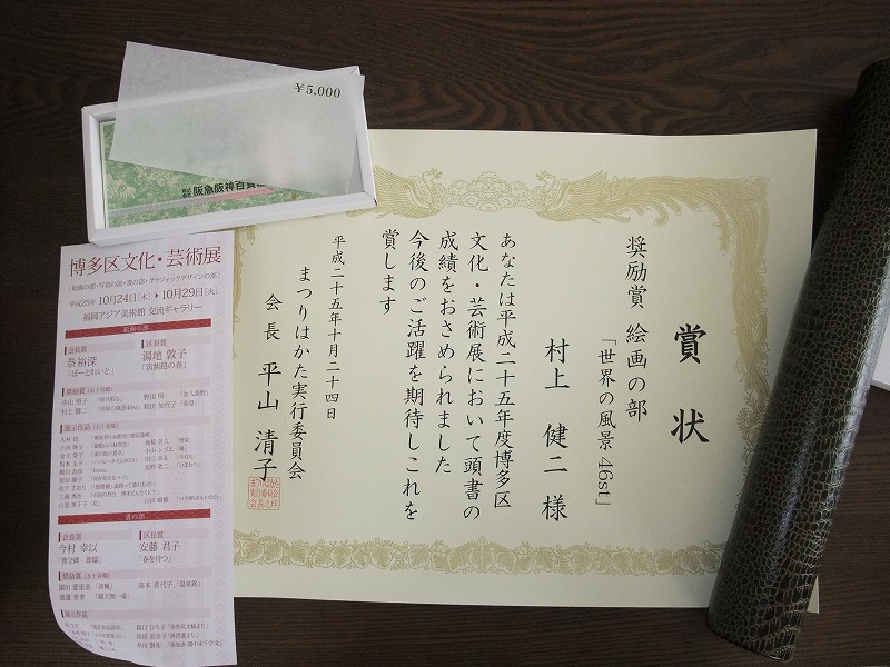 博多区文化芸術展 賞状&商品券 頂きました!