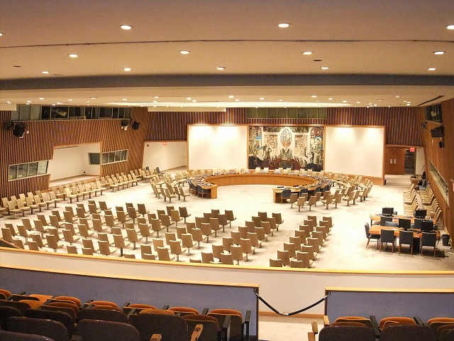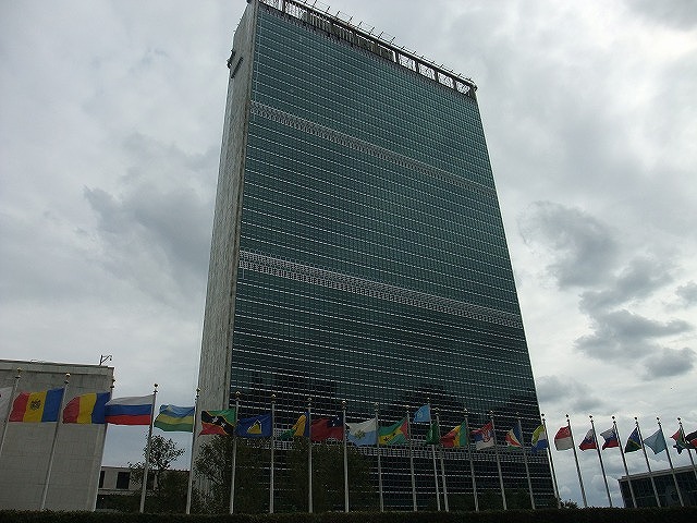 国連 U.N(ユナイテッド ネイションズ」を指差し