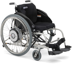 今回購入したヤマハ JWX-2(ジェイ・ダブリュ・エックス・ツー)は、 車いすのハンドリム操作の負荷に応じて、モーターの補助力が働く車いす用電動アシストユニットです。