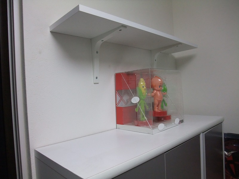 家の壁は石膏ボードに壁紙で覆われており、飾り棚を買ってきてネジで壁に取り付けるだけでは石膏ボードがポロポロ粉のように落ちてきてグラついたり重さに耐え切れず落下してしまいます。