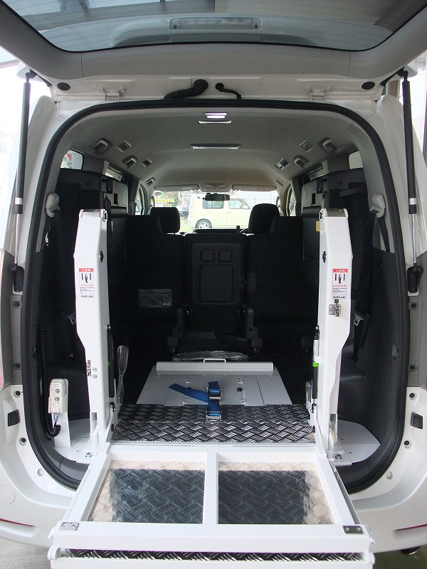 通常7~8人乗りにリフトを付けるとなると、3列目シートを撤去しリフトを付けるのですが、このリフトは省スペースの為リフトを使わない場合は3列目も使用できます。