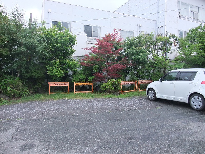 店舗のおくにある神社のかなり広い駐車場があります。砂利です注意。