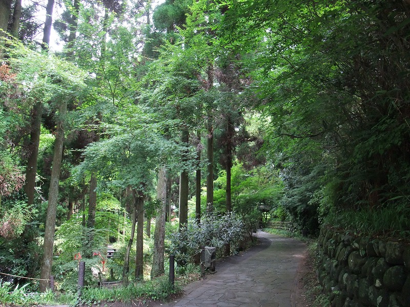 神社と水源がある場所までは石畳ですがほとんど車椅子をこぐことができます。駐車場の前に坂が1つあります。