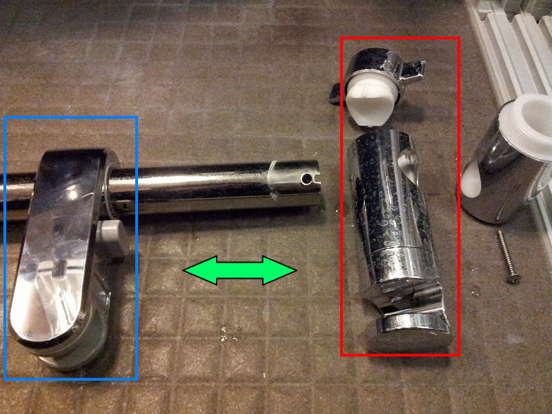 バスルームのシャワーを、固定する為のスライド式のバーの付属品が壊れ好きな位置で固定できない。