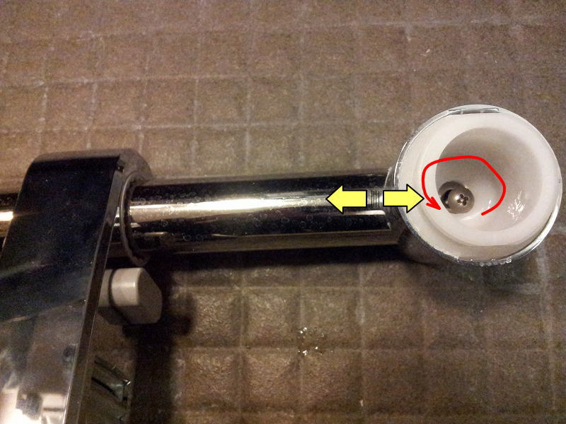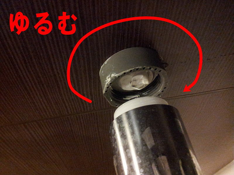 ※壁からパイプを外します。画像の部分を工具を使わずに手で時計回りに回すと外れます。